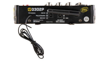 O M0203P oferece entradas XLR para microfone, P10 para instrumentos e conexões RCA para players e outras fontes de áudio. Isso permite integrar diferentes equipamentos no mesmo sistema com facilidade.
